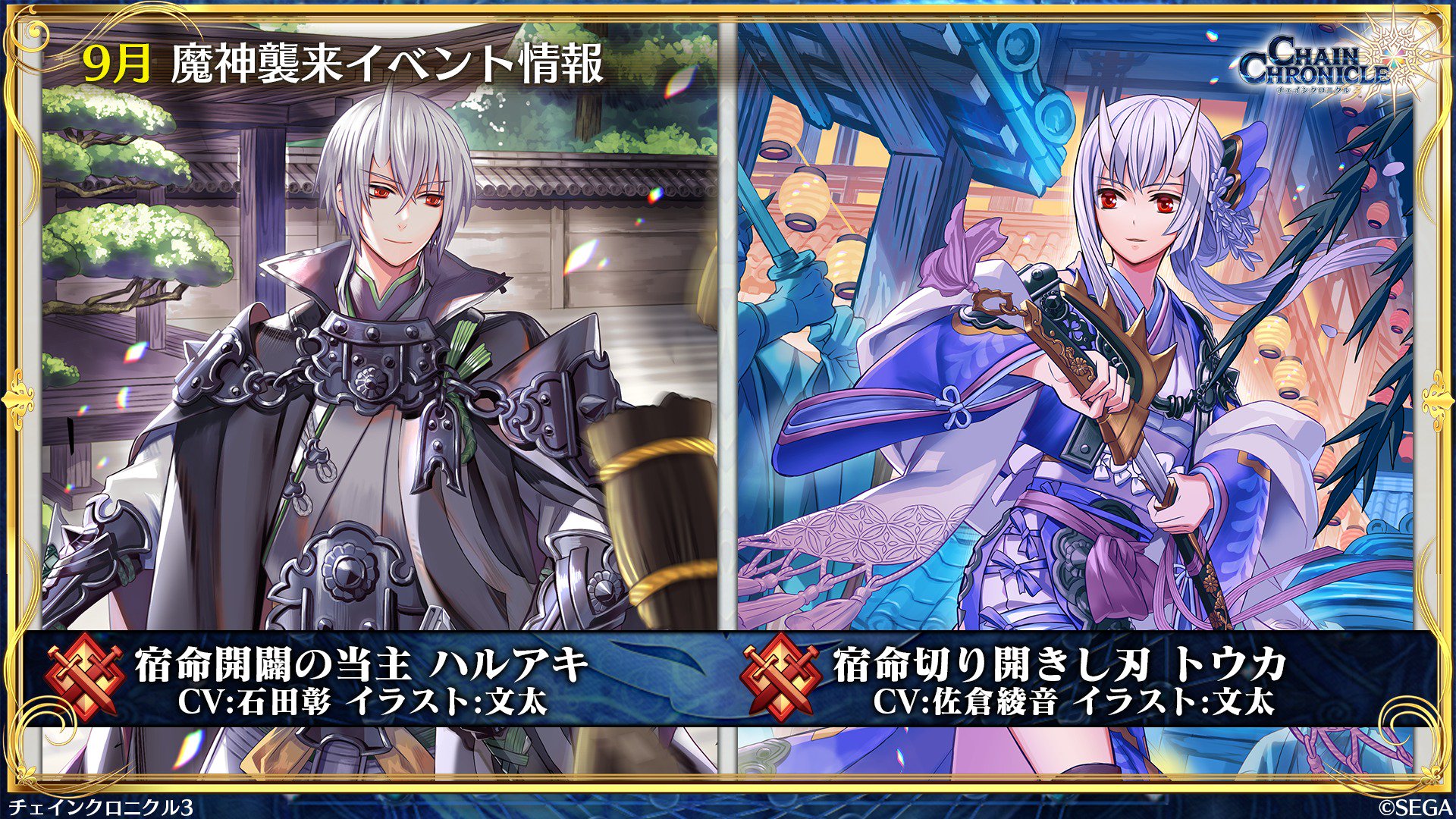 チェインクロニクル公式 絆の生放送で発表があったとおり 次回の魔神襲来イベントは九領が舞台になります イベントに登場する ハルアキ と トウカ について エピソードの一部を紹介していきます チェンクロ